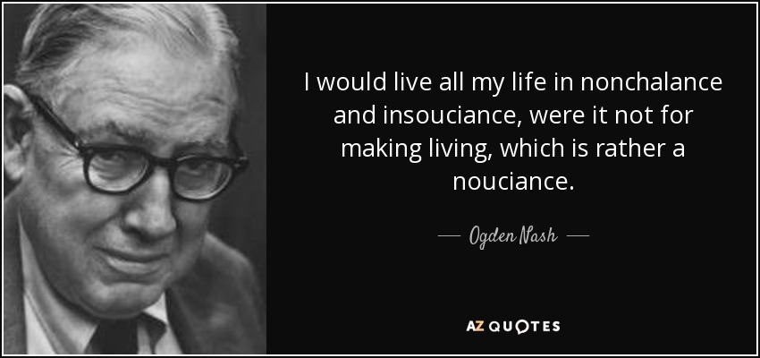 I would live all my life in nonchalance and insouciance, were it not for making living, which is rather a nouciance.