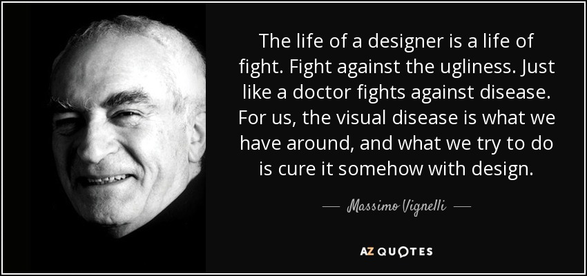 The life of a designer is a life of fight. Fight against the ugliness. Just like a doctor fights against disease. For us, the visual disease is what we have around, and what we try to do is cure it somehow with design.