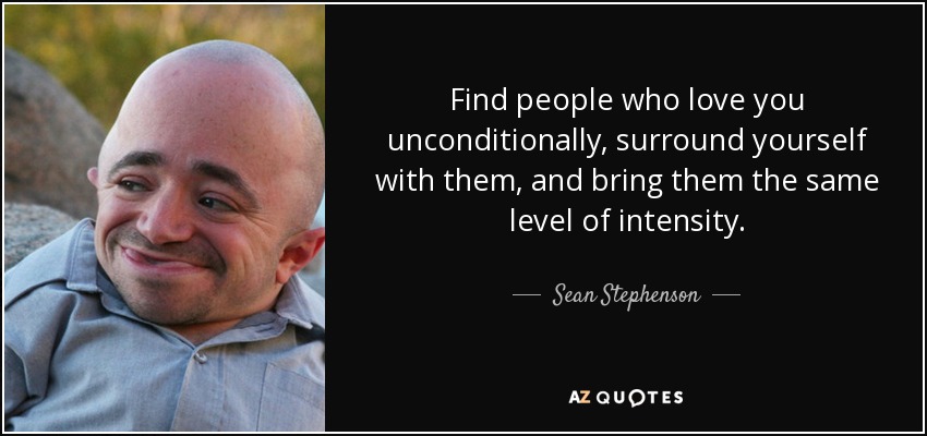 Find people who love you unconditionally, surround yourself with them, and bring them the same level of intensity.