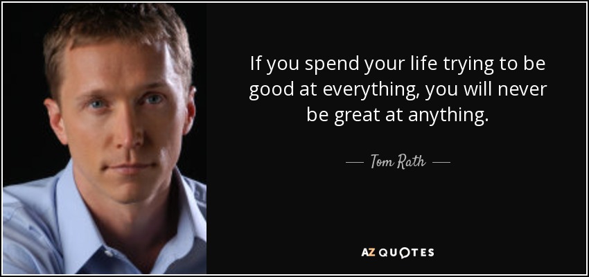 If you spend your life trying to be good at everything, you will never be great at anything.