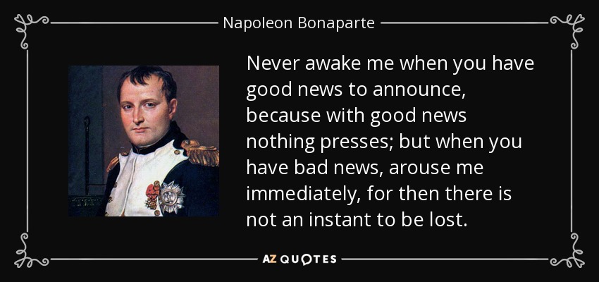 Never awake me when you have good news to announce, because with good news nothing presses; but when you have bad news, arouse me immediately, for then there is not an instant to be lost.