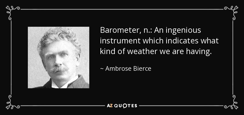 Barometer, n.: An ingenious instrument which indicates what kind of weather we are having.