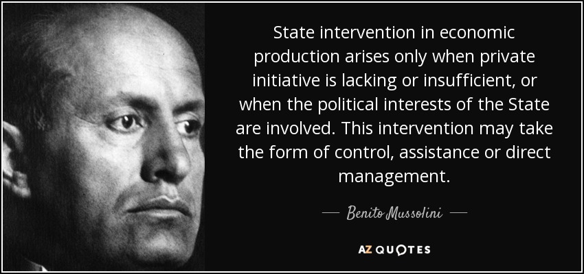 State intervention in economic production arises only when private initiative is lacking or insufficient, or when the political interests of the State are involved. This intervention may take the form of control, assistance or direct management.