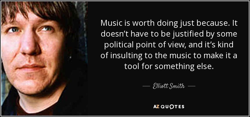 Music is worth doing just because. It doesn’t have to be justified by some political point of view, and it’s kind of insulting to the music to make it a tool for something else.