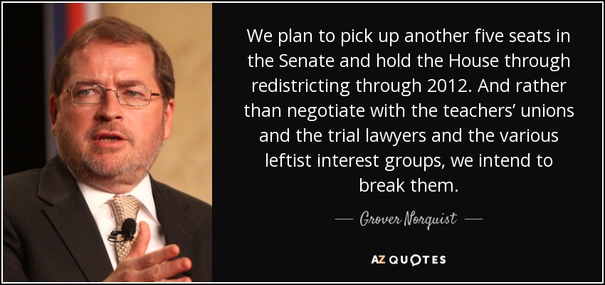 We plan to pick up another five seats in the Senate and hold the House through redistricting through 2012. And rather than negotiate with the teachers’ unions and the trial lawyers and the various leftist interest groups, we intend to break them.