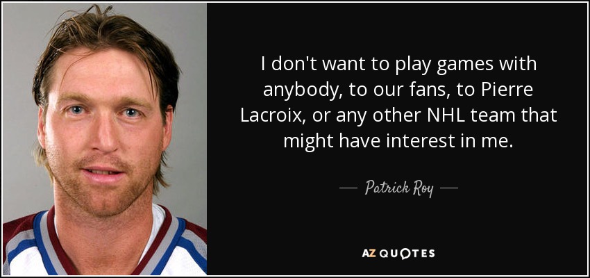 I don't want to play games with anybody, to our fans, to Pierre Lacroix, or any other NHL team that might have interest in me.