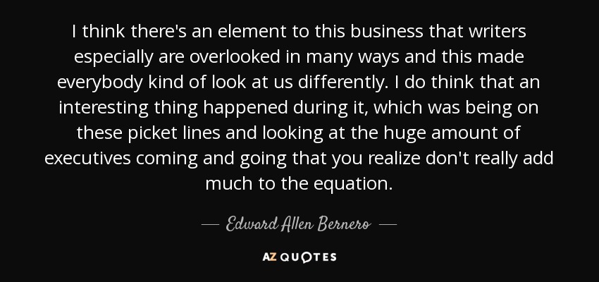 I think there's an element to this business that writers especially are overlooked in many ways and this made everybody kind of look at us differently. I do think that an interesting thing happened during it, which was being on these picket lines and looking at the huge amount of executives coming and going that you realize don't really add much to the equation.