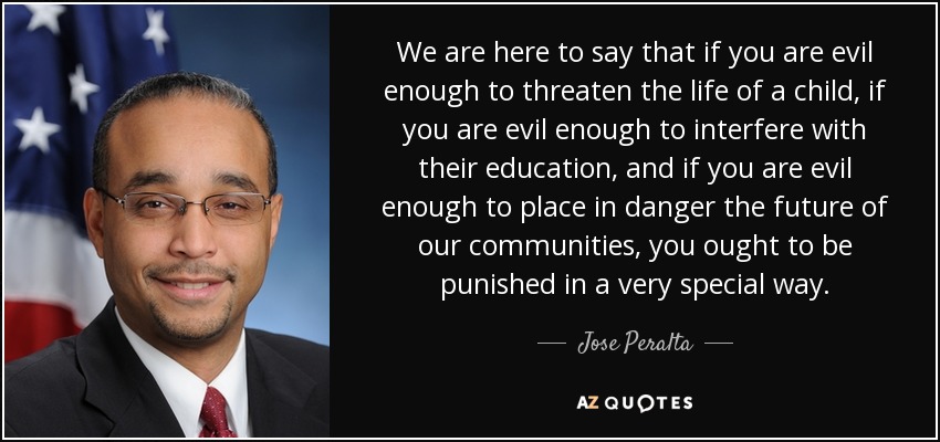 We are here to say that if you are evil enough to threaten the life of a child, if you are evil enough to interfere with their education, and if you are evil enough to place in danger the future of our communities, you ought to be punished in a very special way.