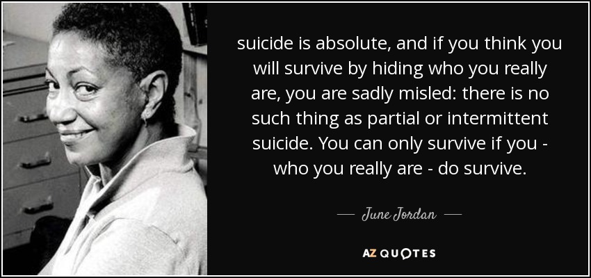 suicide is absolute, and if you think you will survive by hiding who you really are, you are sadly misled: there is no such thing as partial or intermittent suicide. You can only survive if you - who you really are - do survive.