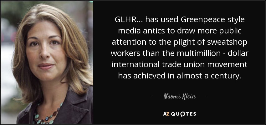 GLHR... has used Greenpeace-style media antics to draw more public attention to the plight of sweatshop workers than the multimillion - dollar international trade union movement has achieved in almost a century.