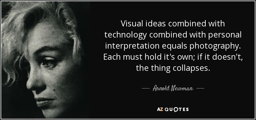 Visual ideas combined with technology combined with personal interpretation equals photography. Each must hold it's own; if it doesn't, the thing collapses.