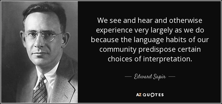 We see and hear and otherwise experience very largely as we do because the language habits of our community predispose certain choices of interpretation.