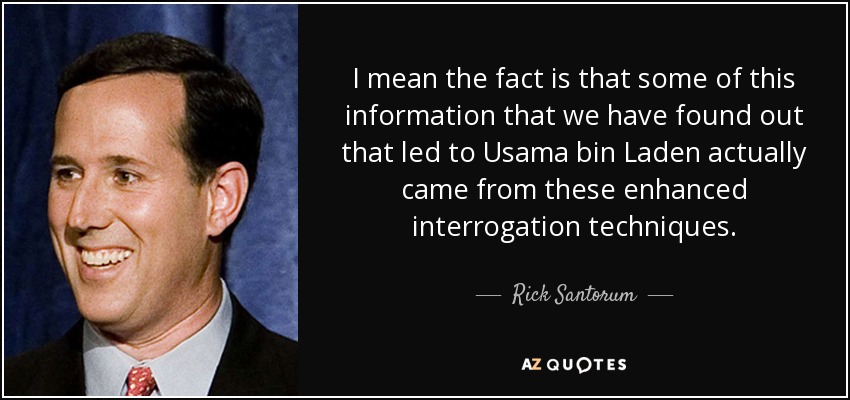 I mean the fact is that some of this information that we have found out that led to Usama bin Laden actually came from these enhanced interrogation techniques.