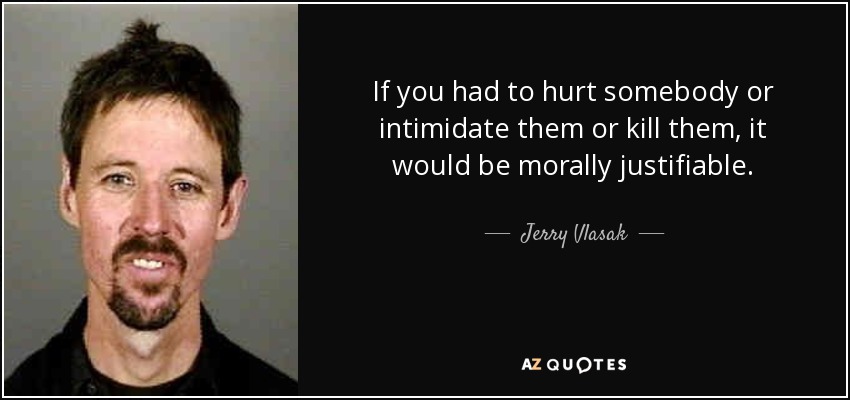 If you had to hurt somebody or intimidate them or kill them, it would be morally justifiable.