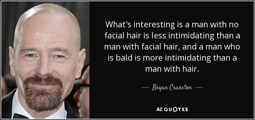 What's interesting is a man with no facial hair is less intimidating than a man with facial hair, and a man who is bald is more intimidating than a man with hair.