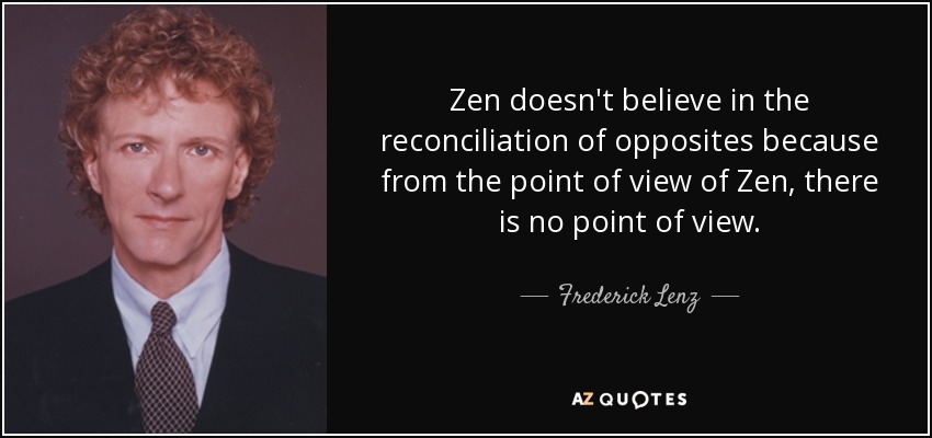 Zen doesn't believe in the reconciliation of opposites because from the point of view of Zen, there is no point of view.