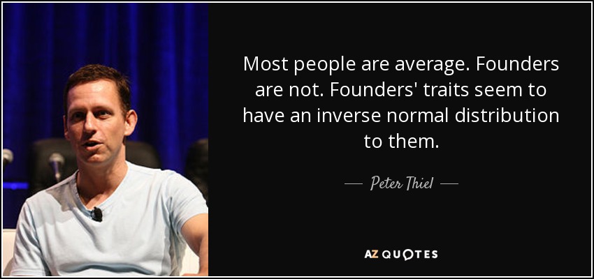 Most people are average. Founders are not. Founders' traits seem to have an inverse normal distribution to them.