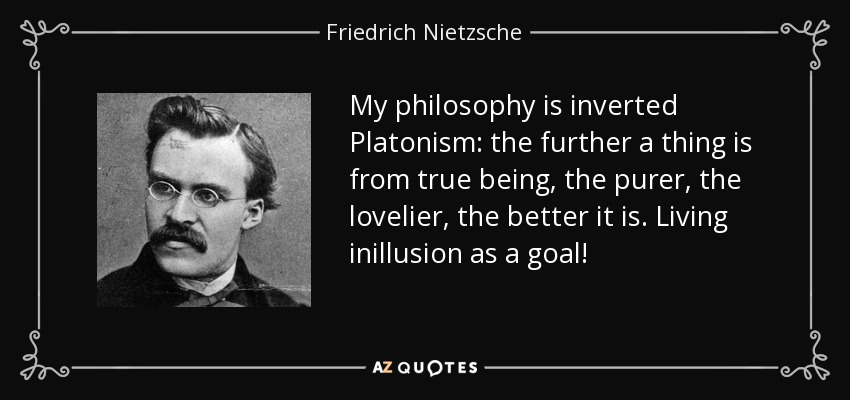 My philosophy is inverted Platonism: the further a thing is from true being, the purer, the lovelier, the better it is. Living inillusion as a goal!