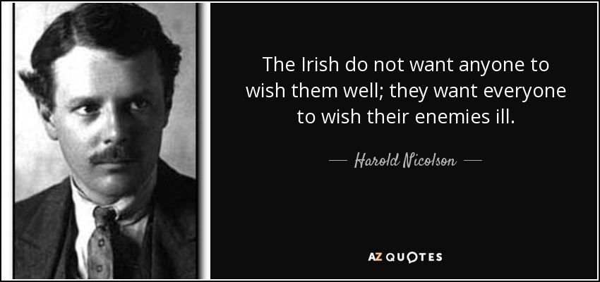 The Irish do not want anyone to wish them well; they want everyone to wish their enemies ill.
