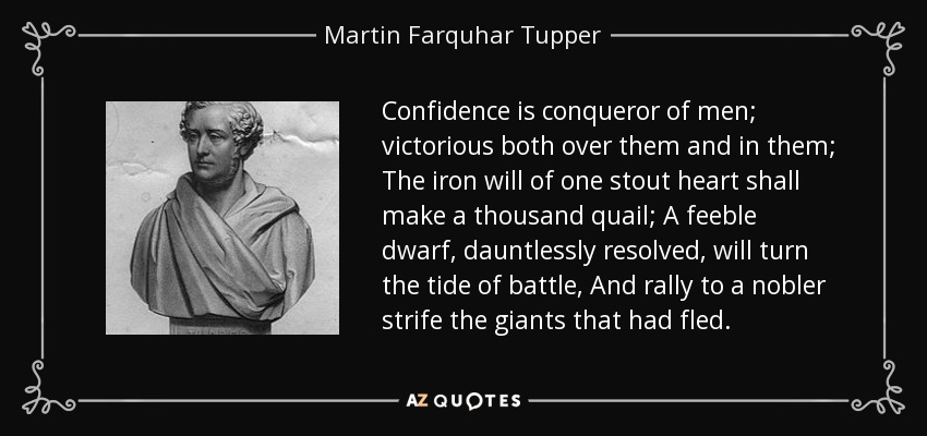 Confidence is conqueror of men; victorious both over them and in them; The iron will of one stout heart shall make a thousand quail; A feeble dwarf, dauntlessly resolved, will turn the tide of battle, And rally to a nobler strife the giants that had fled.