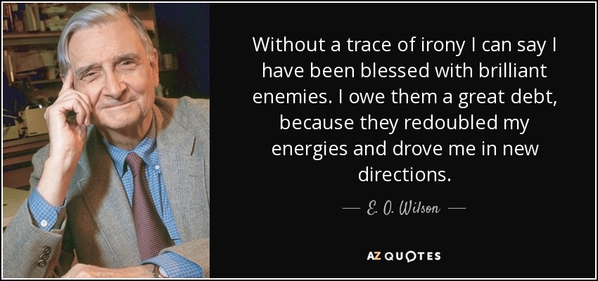 Without a trace of irony I can say I have been blessed with brilliant enemies. I owe them a great debt, because they redoubled my energies and drove me in new directions.