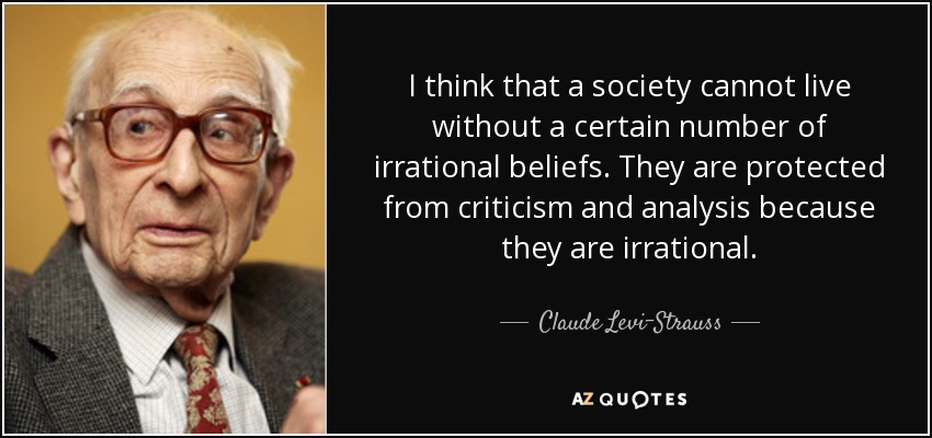 I think that a society cannot live without a certain number of irrational beliefs. They are protected from criticism and analysis because they are irrational.