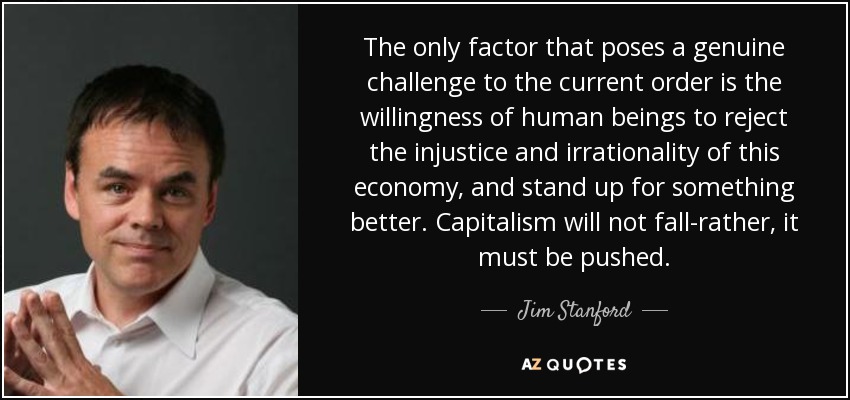 The only factor that poses a genuine challenge to the current order is the willingness of human beings to reject the injustice and irrationality of this economy, and stand up for something better. Capitalism will not fall-rather, it must be pushed.
