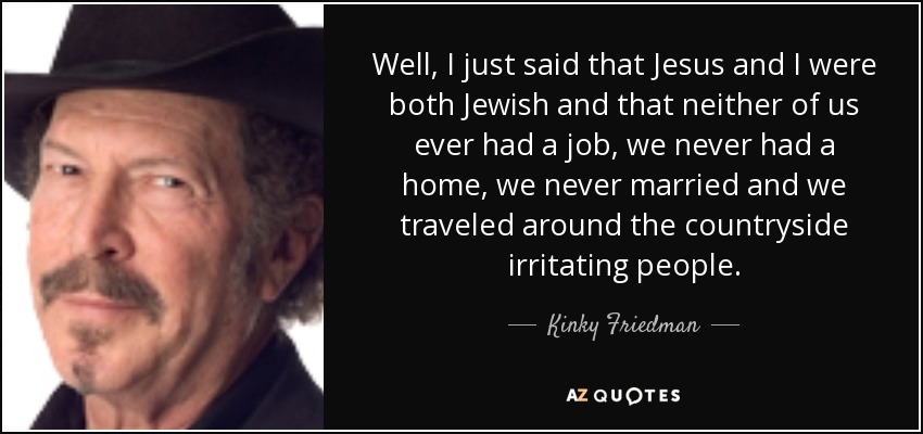 Well, I just said that Jesus and I were both Jewish and that neither of us ever had a job, we never had a home, we never married and we traveled around the countryside irritating people.