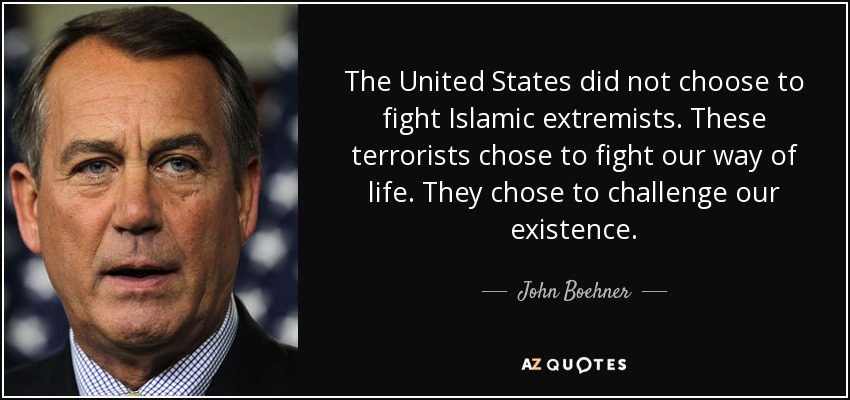 The United States did not choose to fight Islamic extremists. These terrorists chose to fight our way of life. They chose to challenge our existence.