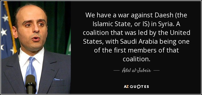 We have a war against Daesh (the Islamic State, or IS) in Syria. A coalition that was led by the United States, with Saudi Arabia being one of the first members of that coalition.