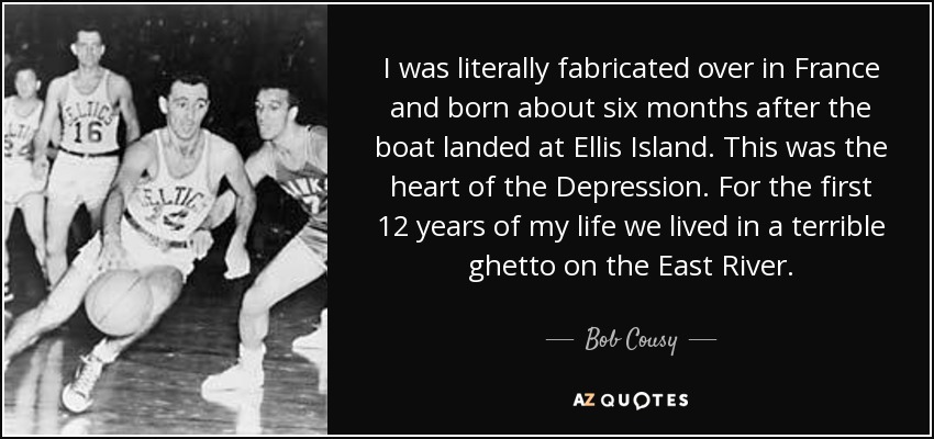 I was literally fabricated over in France and born about six months after the boat landed at Ellis Island. This was the heart of the Depression. For the first 12 years of my life we lived in a terrible ghetto on the East River.