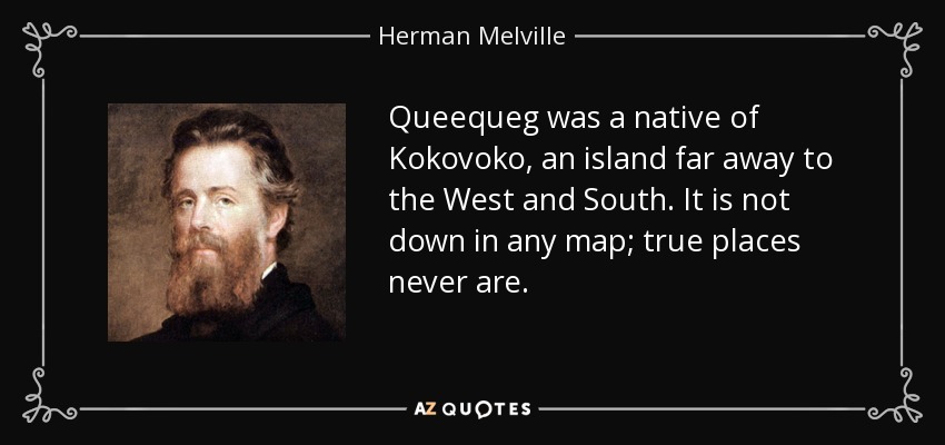 Queequeg was a native of Kokovoko, an island far away to the West and South. It is not down in any map; true places never are.