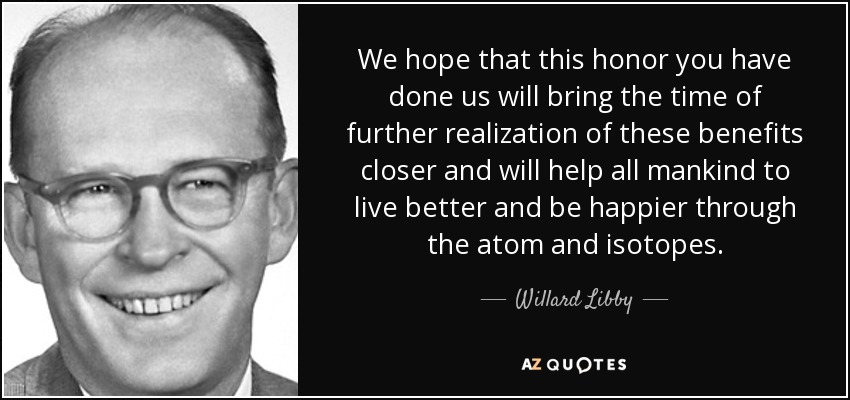 We hope that this honor you have done us will bring the time of further realization of these benefits closer and will help all mankind to live better and be happier through the atom and isotopes.