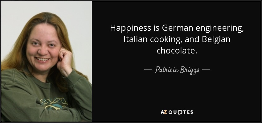 Happiness is German engineering, Italian cooking, and Belgian chocolate.