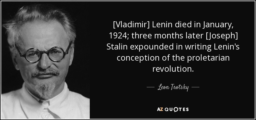[Vladimir] Lenin died in January, 1924; three months later [Joseph] Stalin expounded in writing Lenin's conception of the proletarian revolution.