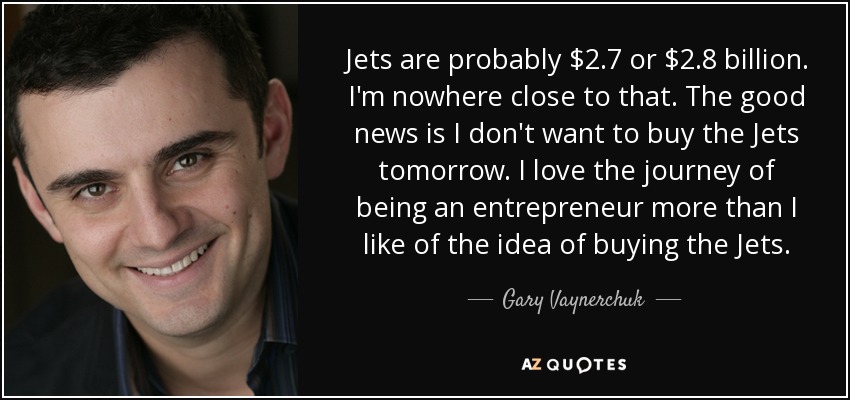 Jets are probably $2.7 or $2.8 billion. I'm nowhere close to that. The good news is I don't want to buy the Jets tomorrow. I love the journey of being an entrepreneur more than I like of the idea of buying the Jets.