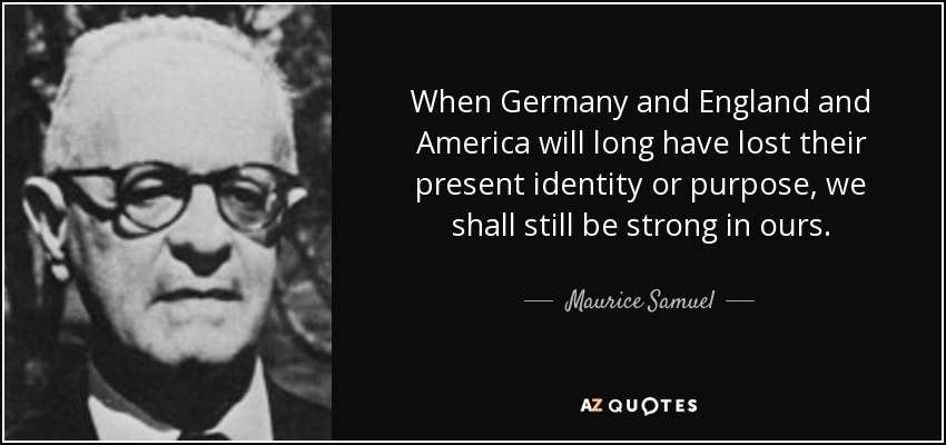 When Germany and England and America will long have lost their present identity or purpose, we shall still be strong in ours.
