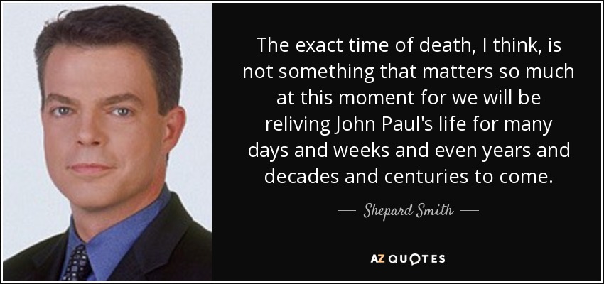 The exact time of death, I think, is not something that matters so much at this moment for we will be reliving John Paul's life for many days and weeks and even years and decades and centuries to come.