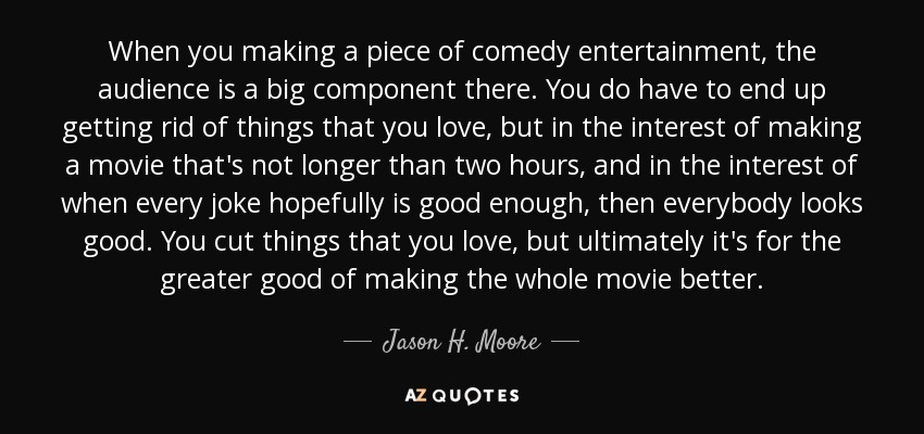 When you making a piece of comedy entertainment, the audience is a big component there. You do have to end up getting rid of things that you love, but in the interest of making a movie that's not longer than two hours, and in the interest of when every joke hopefully is good enough, then everybody looks good. You cut things that you love, but ultimately it's for the greater good of making the whole movie better.