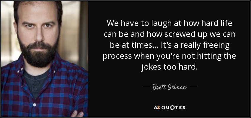 We have to laugh at how hard life can be and how screwed up we can be at times... It's a really freeing process when you're not hitting the jokes too hard.