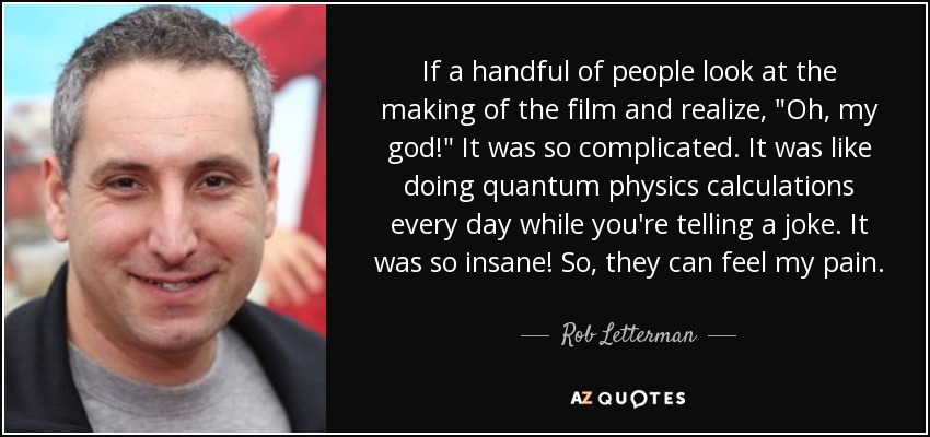 If a handful of people look at the making of the film and realize, "Oh, my god!" It was so complicated. It was like doing quantum physics calculations every day while you're telling a joke. It was so insane! So, they can feel my pain.