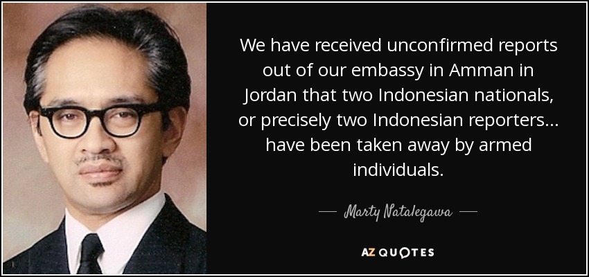 We have received unconfirmed reports out of our embassy in Amman in Jordan that two Indonesian nationals, or precisely two Indonesian reporters ... have been taken away by armed individuals.