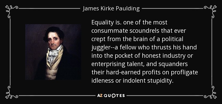 Equality is. one of the most consummate scoundrels that ever crept from the brain of a political juggler--a fellow who thrusts his hand into the pocket of honest industry or enterprising talent, and squanders their hard-earned profits on profligate idleness or indolent stupidity.