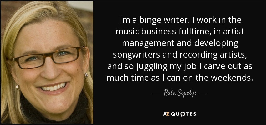 I'm a binge writer. I work in the music business fulltime, in artist management and developing songwriters and recording artists, and so juggling my job I carve out as much time as I can on the weekends.