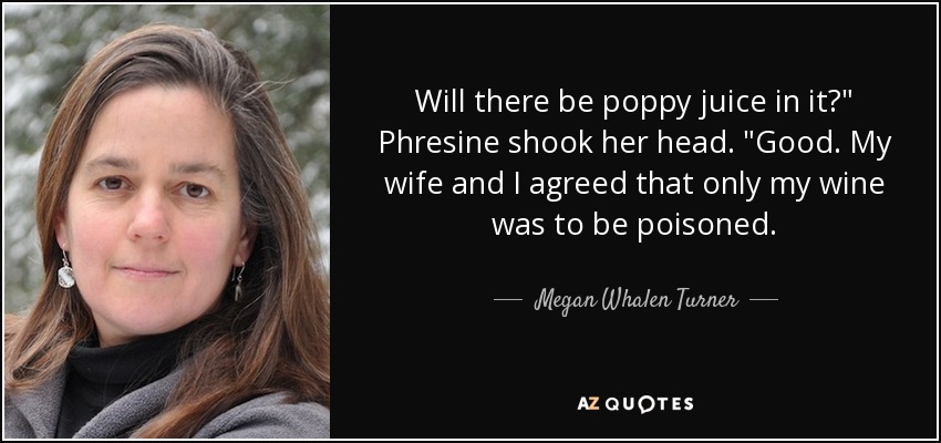 Will there be poppy juice in it?" Phresine shook her head. "Good. My wife and I agreed that only my wine was to be poisoned.