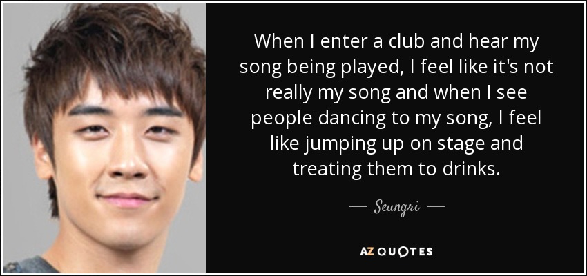 When I enter a club and hear my song being played, I feel like it's not really my song and when I see people dancing to my song, I feel like jumping up on stage and treating them to drinks.