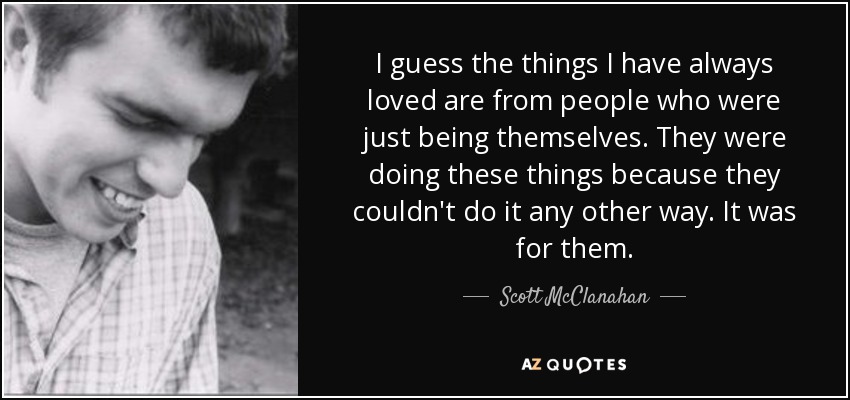 I guess the things I have always loved are from people who were just being themselves. They were doing these things because they couldn't do it any other way. It was for them.