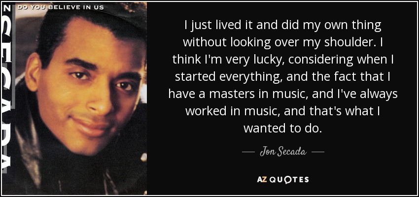 I just lived it and did my own thing without looking over my shoulder. I think I'm very lucky, considering when I started everything, and the fact that I have a masters in music, and I've always worked in music, and that's what I wanted to do.