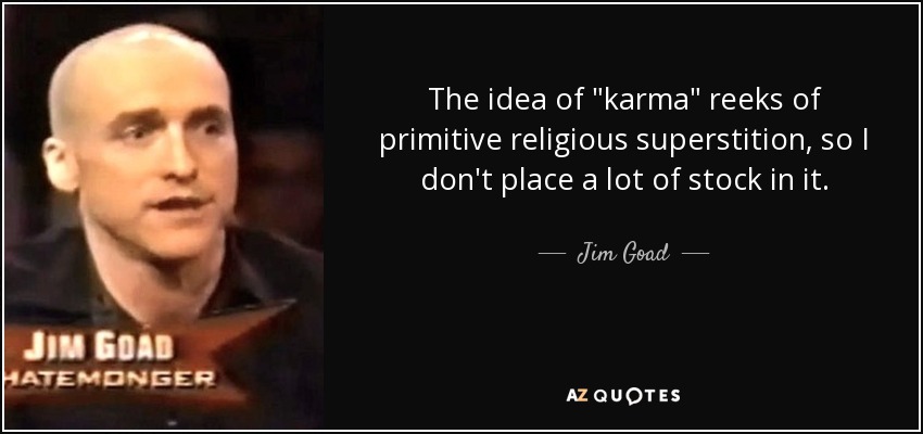 The idea of "karma" reeks of primitive religious superstition, so I don't place a lot of stock in it.