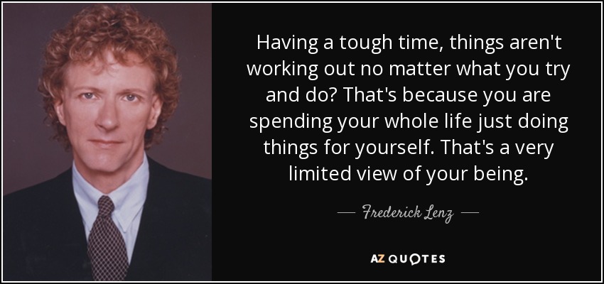 Having a tough time, things aren't working out no matter what you try and do? That's because you are spending your whole life just doing things for yourself. That's a very limited view of your being.